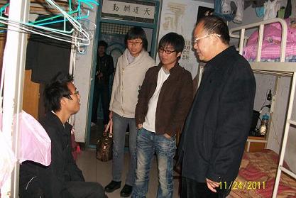 11月24日中午,我院党总支书记马广卿、党总支副书记徐纪珂、副院长朱跃峰、高明远、团总支书记高剑南等领导及辅导员老师来到学生宿舍与学生谈心交流,亲切的慰问着学生的生活,叮嘱每位学生要注意加衣保暖,多运动,时刻注意自己的身体健康,有一个健康的体魄,才能更好地完成自己的在校学习、生活。最后希望同学们在学习、生活中遇到困难,一定要向院里反映,学院会尽力为每位同学解决困难。