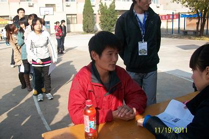举办此次招聘会意在为学生提供更多与社会接触的机会,提高在校学生的求职能力和职业规划意识,从而引导他们合理地进行职业规划,提高职场应聘技巧。招聘会上模拟的有诺基亚、阿里巴巴、新东方、海尔等公司进行招聘。模拟招聘会开始后同学们拿着精心准备的个人简历参加面试,他们排队依次上场,应聘过程中沉着、冷静、自信。