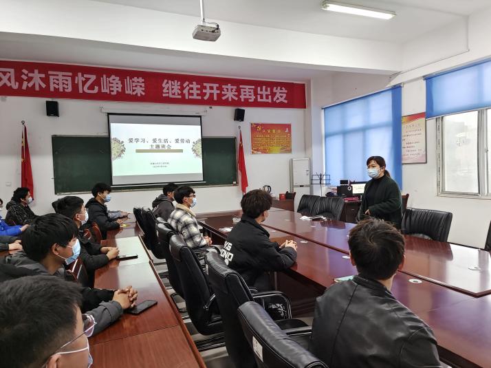 3月22日晚上18:30点在6号楼三楼,机汽学院进行了“爱学习、爱生活、爱劳动”主题班会,会议由团委书记王文慧老师主持,21级各班学生代表参加,以当前严峻的疫情形势为背景,以“爱学习、爱生活、爱劳动”为主题,围绕如何提高学生劳动意识和如何开展实践活动展开。