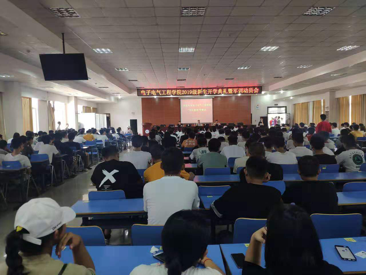 杨辉书记进行军训动员讲话。他要求新生在军训中要尊重教官,听教官指挥,做到不迟到,不早退,勤学苦练,团结同学,以优异的军训成果和良好的精神风貌充分展示电子电气工程学院学子们的风采。最后杨书记就公民宗教信仰,如何抵制邪教势力的渗透等向学子们做了深刻的阐述。