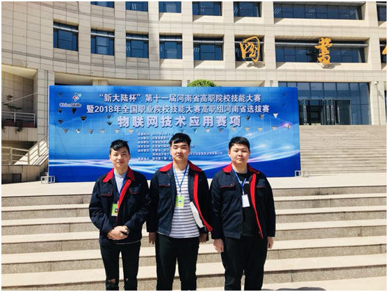 4月6日——4月7日,由河南省教育厅主办的“第十一届河南省高职院校技能大赛暨2018年全国职业院校技能大赛高职组河南选拔赛物联网技术应用赛项”在河南经贸职业技术学院隆重举行。由我校电子电气工程学院李莉、邓娜老师指导的电子电气工程学院2016级物联网应用技术专业学生王昆、孟昶和张思涵同学的项目荣获本次大赛团体二等奖。