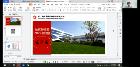 为贯彻落实习近平总书记关于职业教育的重要指示精神,响应职业教育服务“一带一路”,助力中国制造走向世界,为保障电子电气工程学院2020级全体学生的实习顺利,进一步提高2020级学生就业质量,增加实习加就业工作选择,电子电气工程学院于近日举行多场院企合作就业实习线上宣讲会。电子电气工程学院党总支书记李鹏,院长杜诗超出席会议,海康威视、卧龙电驱、杰士德、帕瓦新能源有限公司等企业进行线上宣讲,2020级全体学生参加本次会议。