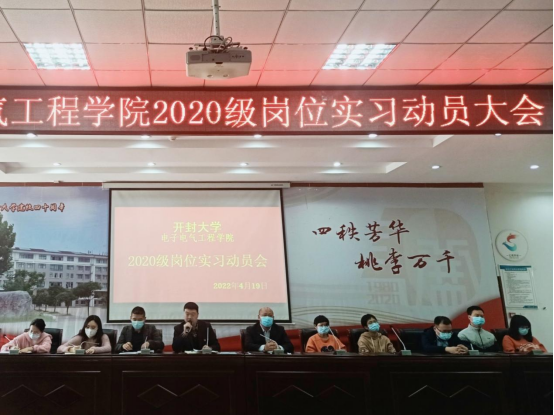 为了加强实习管理,让2020级学生认识到实习的重要性,明确实习方向与实习要求,2022年4月20日,电子电气工程学院在土木学院六楼报告厅召开了20级岗位实习动员大会。学院党总支书记李鹏、院长杜诗超、各教研室主任和全体辅导员、实习指导老师出席,会议由李鹏主持。