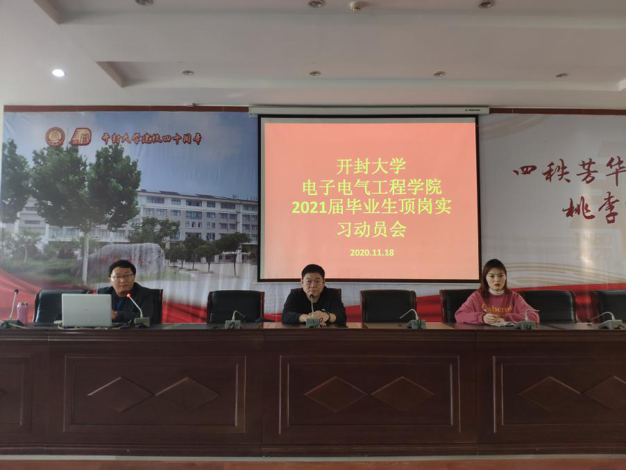 为规范实习制度,保障毕业生顶岗实习工作顺利进行,电子电气工程学院于11月18日下午3点在土木学院6楼报告厅举行2021届毕业生顶岗实习动员会。学院党支部副书记杨辉、副院长边疆以及团总支负责人、18级辅导员李俊葳老师出席了本次会议。