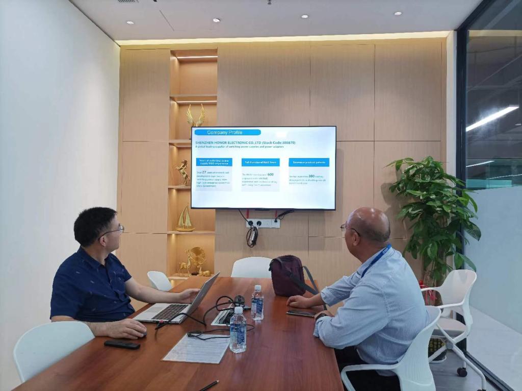 访企团队先后考察走访了深圳欧陆通电子股份有限公司、深圳市智丰电子科技有限公司、东莞市美庆电子科技有限公司、深圳中为新能源科技有限公司、广东大明拉斐电气有限公司、深圳市鸿利泰光电科技有限公司等12家企业,通过聆听现场介绍、观看宣传片、实地考察了各个公司的生产车间及办公区域,详细了解了公司的创办历程、经营状况、主营业务及发展规划,企业的整体情况、岗位需求和技能要求,并与企业负责人座谈交流。