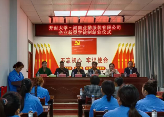 10月30日,bat365在线官方网站河南业勤服装有限公司企业新型学徒制项目结业仪式在河南业勤服装有限公司举行,副校长李治、教务处、艺术设计学院、开封市人社局相关领导参加结业仪式。
