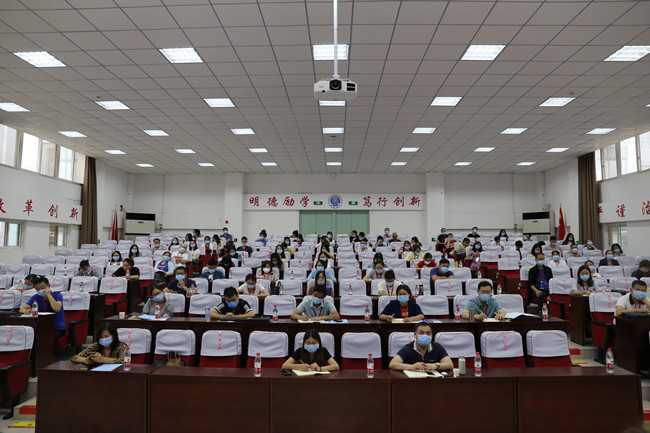本站讯 8月21日上午,我校在行政楼一楼报告厅举行了2020年河南省物流管理“1+X”证书培训班开班仪式。校党委委员、副校长赵辉,全国物流职业教育教学指导委员会副秘书长李俊峰,财政经济学院院长李国莉,财政经济学院党总支书记赵志成出席了开班仪式,我校财政经济学院教师代表以及来自全省38所院校的100名高职院校物流专业教师参加了开班仪式。仪式由教务处处长冯天才主持。
