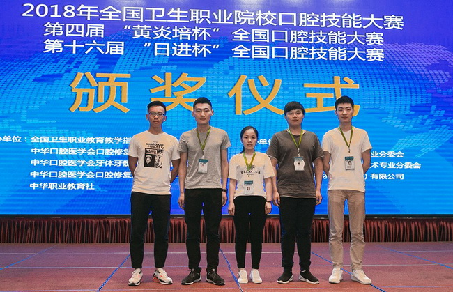 全国口腔技能大赛同时进行。大赛共设牙体制备、雕牙和排牙、CAD修复体设计三个竞技项目,七个奖项。我校5名选手参加了比赛,经过激烈角逐,王盼云同学荣获牙体雕刻单项奖一等奖、李忠斌同学荣获二等奖,于法文同学获得窝洞制备单项奖三等奖,张家豪同学荣获CAD修复体设计组三等奖。我校青年教师葛亚丽荣获全国口腔职业院校青年教师授课技能比赛三等奖。