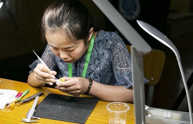 单项奖一等奖获得者我校王盼云同学进行雕牙展示