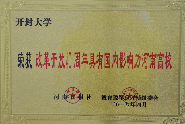 我校荣获“改革开放40周年具有国内影响力河南高校”荣誉称号