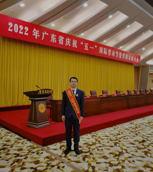 邓辉2014年进入我校机械制造与自动化专业学习,在校期间,他踏实学习专业知识,参与梦想工作室(99°创客空间的前身)的各种项目,代表学校多次参加各项技能大赛,并取得多项优异成绩,为后来的成功打下坚实基础。毕业后进入社会,经过多次人生选择,2019年邓辉到广州华风技工学校担任教师,他带着母校的期寄站到三尺讲台,将自己的所学所长毫无保留地传授给学生。授人以渔外,还不忘自身努力和进步,凭借着在大学时期坚实的专业基础,和毕业后不断自我充电学习,他参加了由人力资源社会保障部、中华全国总工会、中国机械工业联合会共同举办的2021年全国行业职业技能竞赛,获得物联网安装调试员(智能制造数字技术应用)赛项职工组第一名的好成绩。邓辉精湛的专业技能,兢兢业业的工作精神,终于换来社会各界的认可,荣获“全国五一劳动奖章”。