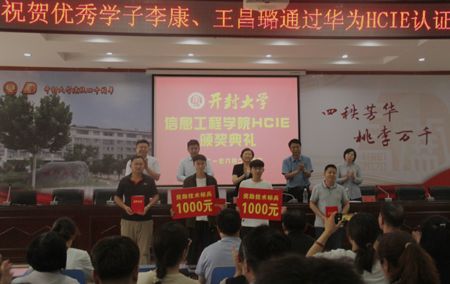 华为政企业务部开封总经理杨昊,我校党委委员、副校长赵辉出席HCIE颁奖大会现场
