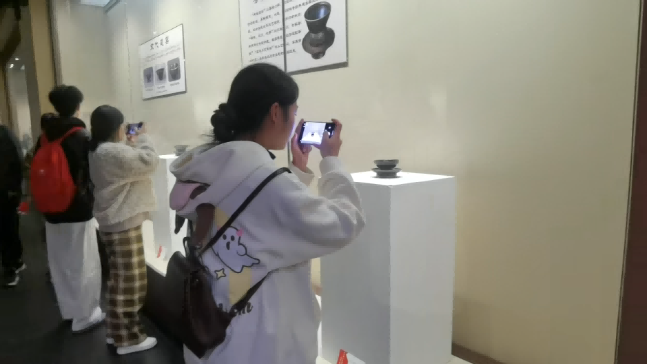 为扩大活动影响力,同学们现场拍摄活动照片与短视频,通过微信视频号、抖音、小红书等新媒体平台实时发布,将展览中的建盏文物故事、宋代茶文化知识传递给更多网友,有效提升了展览与开封文化的传播广度。