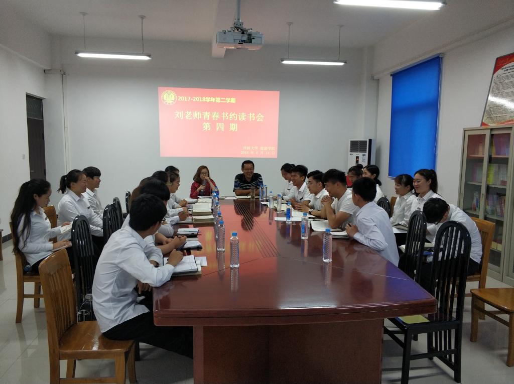 6月14日晚19:00,刘老师青春书约读书会在旅游学院二楼会议室举办第四期交流活动,团总支书记刘中然、辅导员郑笑丛老师和30余名团学青年现场进行交流分享,刘老师网络直播室全程直播,200余人通过直播参与活动。