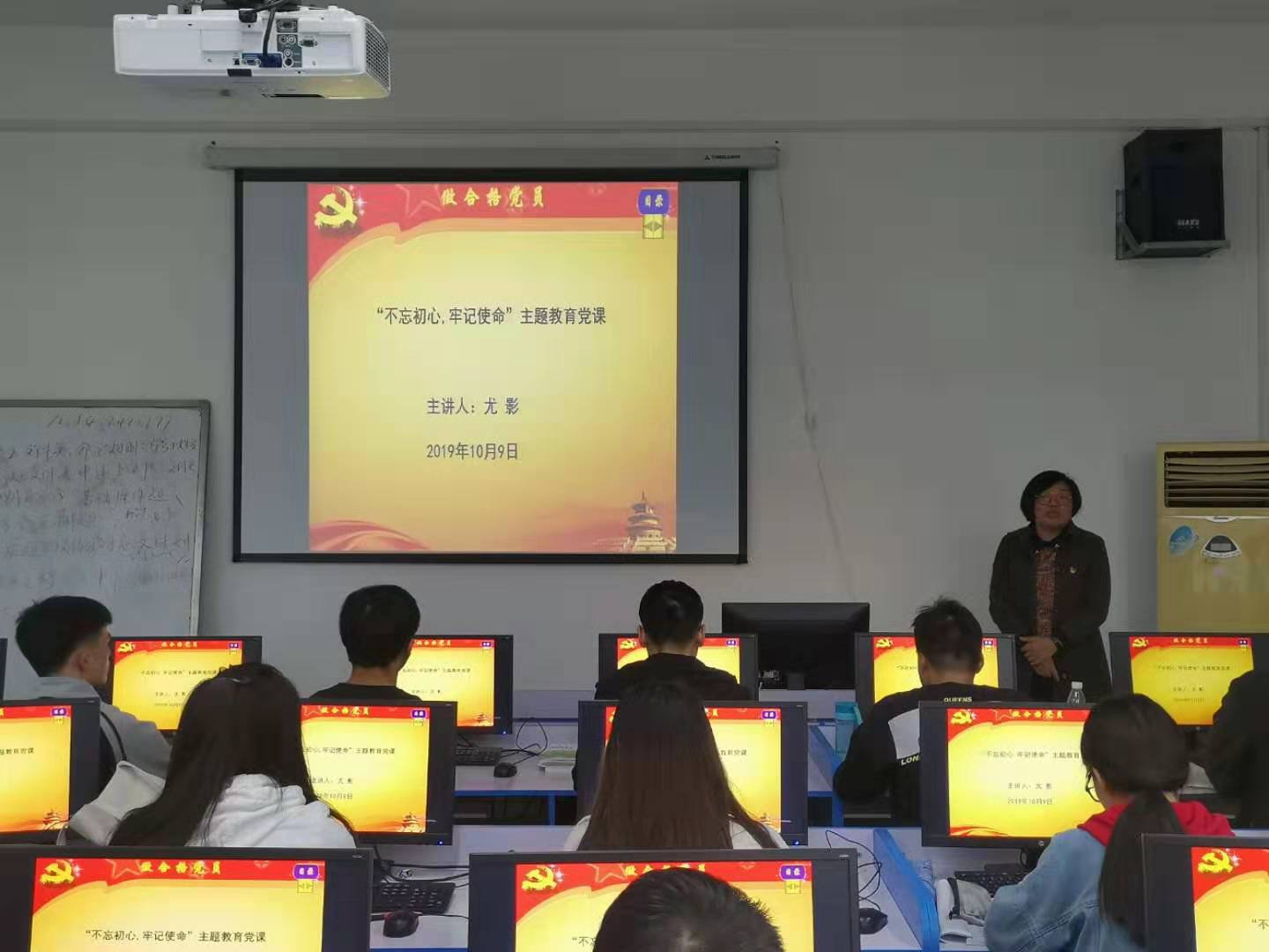 2019年10月9日上午, 旅游学院党总支书记尤影在11#505教室进行了一堂关于“不忘初心、牢记使命”主题教育的微党课,18市场营销1班的全体同学参加。