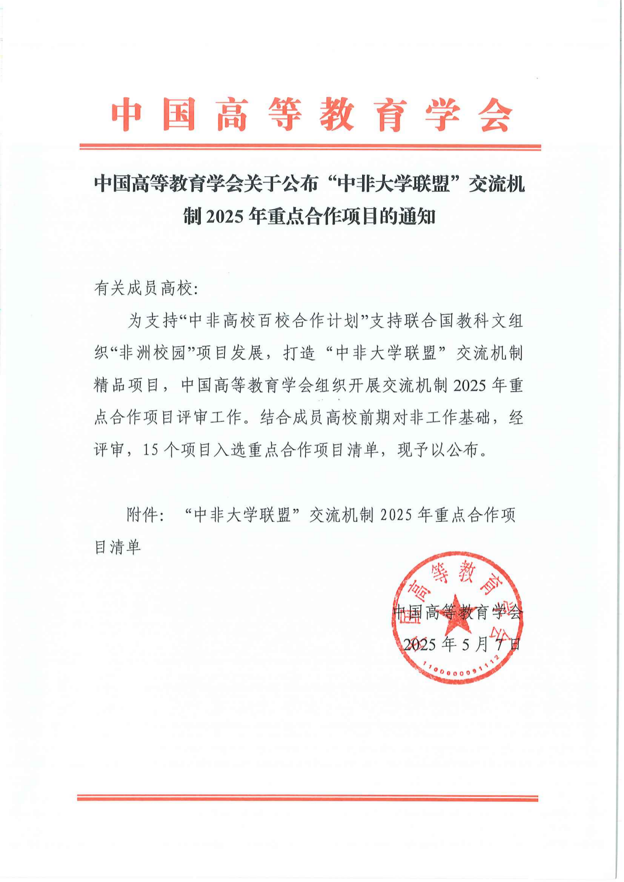 媒体链接:bat365在线官方网站获批中国高等教育学会“中非大学联盟”交流机制2025年重点合作项目