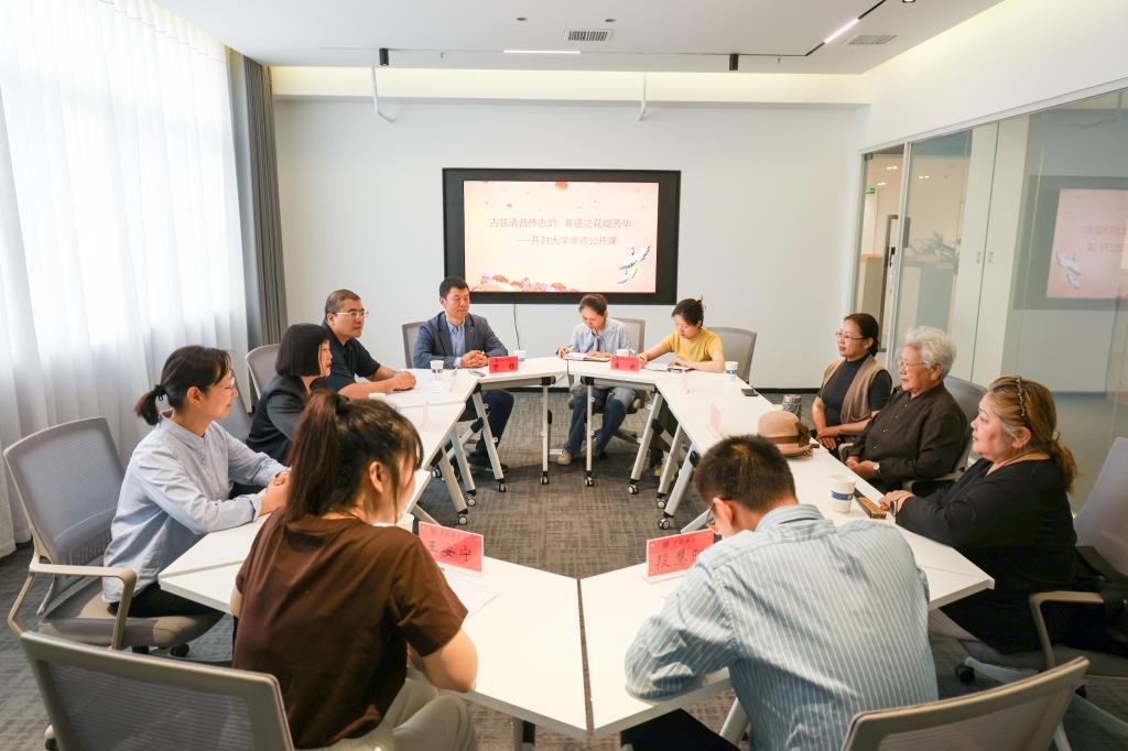 非遗公开课环节,国家级非物质文化遗产保护单位开封市田爱云二夹弦剧团团长、国家二级演员、国家级非物质文化遗产二夹弦项目代表性传承人田爱云及二夹弦非遗传承人吴筱曼、吴小玲以“古弦清音传古韵 非遗之花绽芳华”为主题,开展了一次别开生面的非遗公开课。