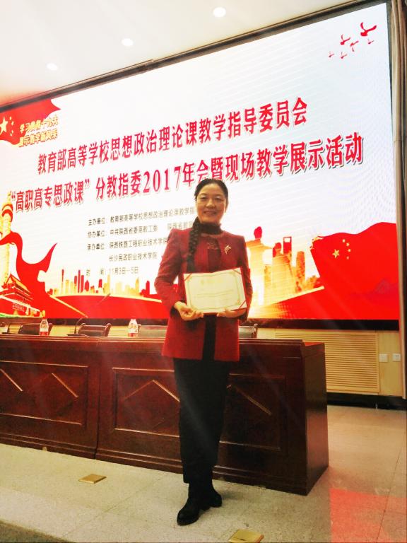 11月3日,由教育部高等学校思想政治理论课教学委员会主办的“高职高专思政课”分教指委2017年会暨现场教学展示活动在陕西铁路职业技术学院举行,我校思想政治理论教研部张兰玲教授在活动中获得了教学展示一等奖,被评为2017“全国高校思想政治理论课教学标兵”。