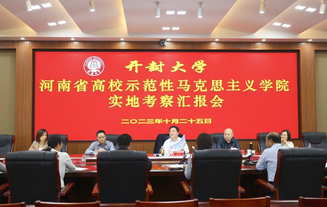 为深入学习贯彻习近平新时代中国特色社会主义思想和党的二十大精神,落实立德树人根本任务,根据省委宣传部、省委教育工委、省教育厅相关工作安排,10月25日下午,由信阳学院党委书记褚金海、河南农业大学马院院长杜志强、河南工程学院马院院长姜国峰、漯河职业技术学院思政部主任石俊霞、河南财经政法大学党委宣传部副部长郑卫丽组成的专家组莅临我校,开展高校示范性马克思主义学院实地考察工作。学校党委书记谭贞、校长王德如、党委副书记储建新出席了汇报会并陪同专家实地考察,相关部门负责人参加了汇报会。
