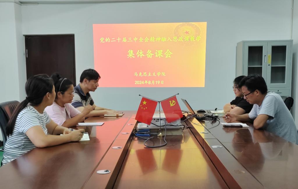 8月19日上午,马克思主义学院在2号楼418会议室召开党的二十届三中全会精神融入思政课教学集体备课会。