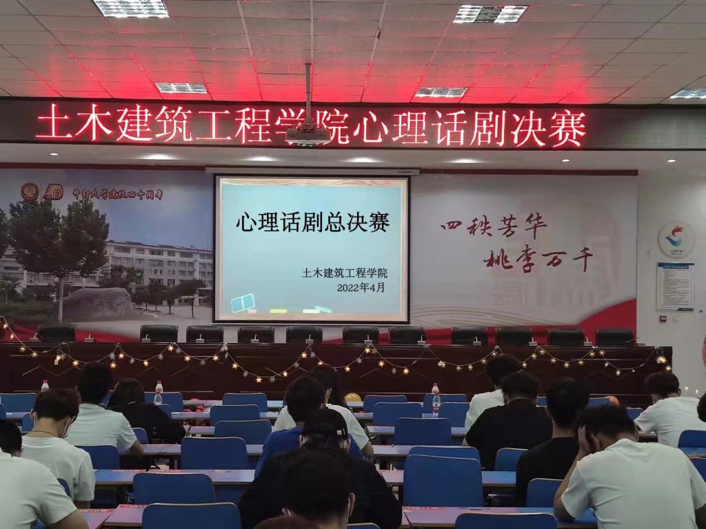 4月25日晚19点,土木建筑工程学院在8号楼6楼报告厅成功举办2022年度心理剧大赛决赛,学院团总支书记赵文婷,辅导员徐喆、王士军、陈玫含、王巍智作为评委出席了本次活动。
