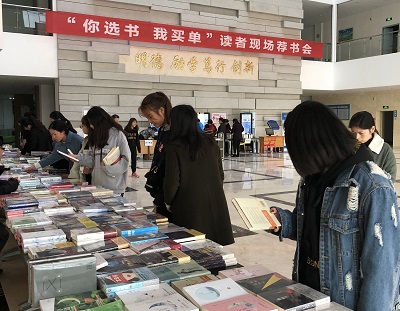 双十一前夕,图书馆联合开封市新华书店在我校图书馆二楼大厅开展了“你选书 我买单”读者现场荐书活动。