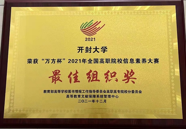 我校图书馆联合信息工程学院在教育部主办的全国高职院校信息素养大赛中荣获最佳组织奖。