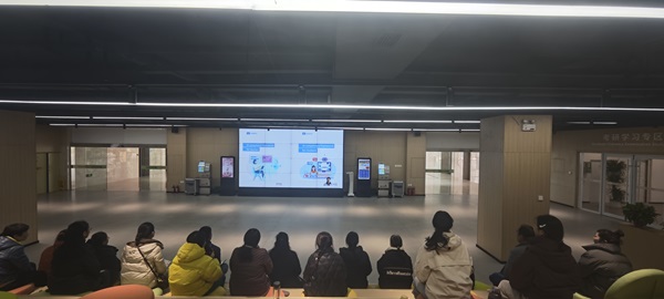 会后全体人员在图书馆二楼多媒体空间观看了《数智重构·馆见未来》的讲座,学习如何通过AI赋能图书馆,提升馆员人工智能素养。