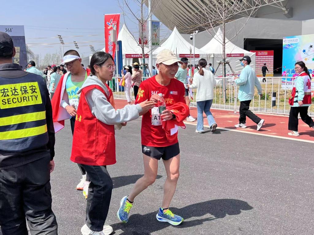 在开封市体育中心,志愿者们身姿笔挺,等待着运动员们跑过冲刺线。伴随着阵阵掌声,礼仪组完成2024年郑开马拉松颁奖仪式的志愿工作。午后时分,随着参赛者们陆续完成比赛,赛后工作才刚刚开始。赛后服务组志愿者们积极协助清理现场卫生,为选手们做冰敷和拉伸,帮助选手们的身体恢复。