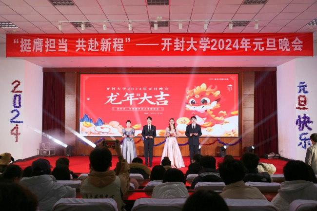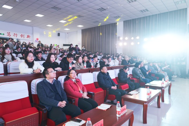 12月29日晚,由校团委主办的bat365在线官方网站“挺膺担当 共赴新程”2024年元旦晚会在行政楼第一会议厅隆重举行。副校长万是明、党政办公室主任陈岩、党委宣传部部长常素芳、学生工作部部长付喆、团委书记刘圣亚、各院部团总支负责人、学生代表欢聚一堂,共同观看演出。