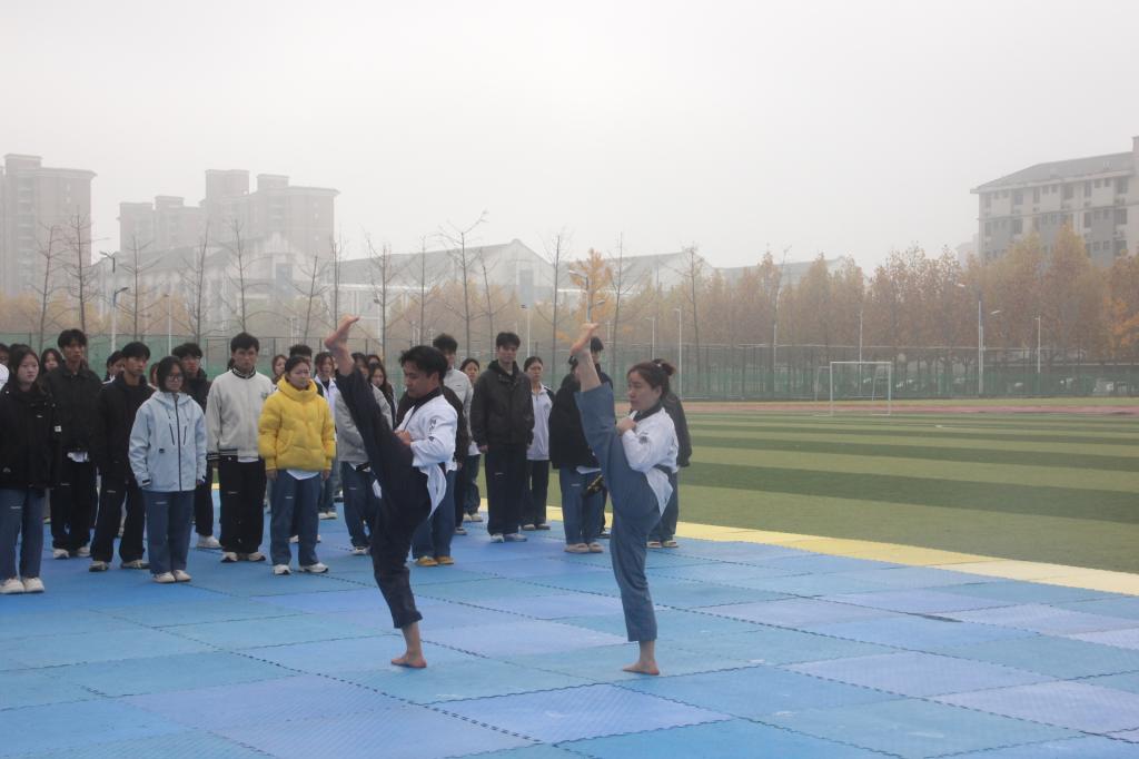 2025年11月8日,2025年度开封市社会体育指导员继续教育培训班(跆拳道)开班仪式在bat365在线官方网站西操场举行,开封市教育体育局群众体育科副科长焦月姣、bat365在线官方网站体育部主任张广军、开封市社会体育指导员协会秘书长邢翠英、开封市跆拳道协会名誉主席薛胜利、开封市跆拳道协会副秘书长、本届培训班主讲肖中亚及bat365在线官方网站体育部班子成员出席仪式。