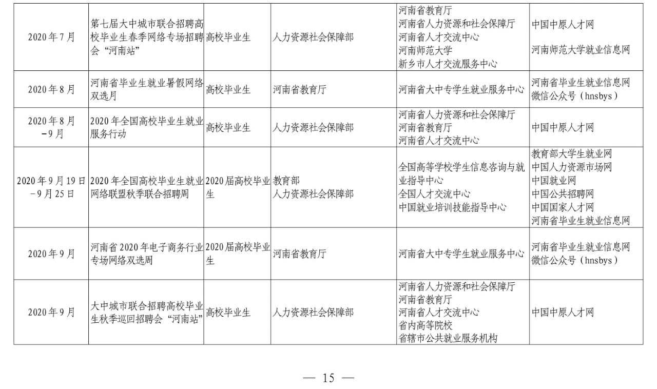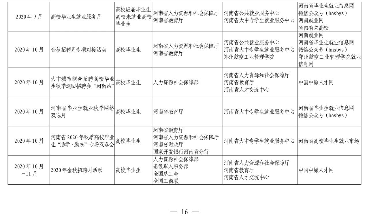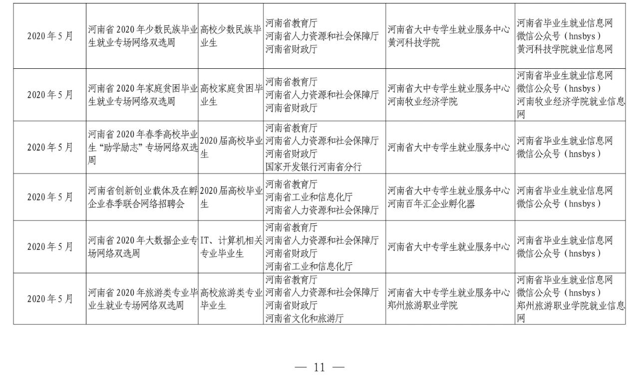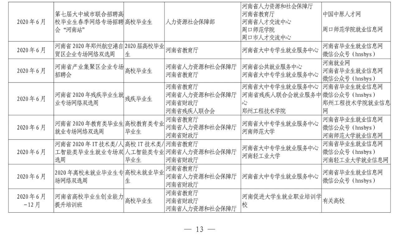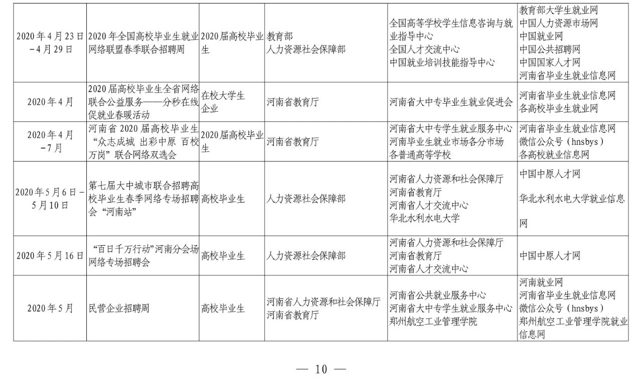 河南省教育厅等十部门关于联合开展河南省2020年高校毕业生