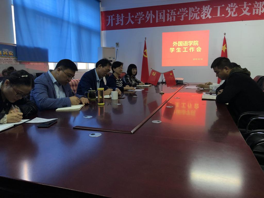 本站讯 10月10日上午,外国语学院在学院会议室召开学生工作研讨会,学院全体领导班子成员及全体辅导员参加了此次会议,会议由党总支副书记陈茜主持。