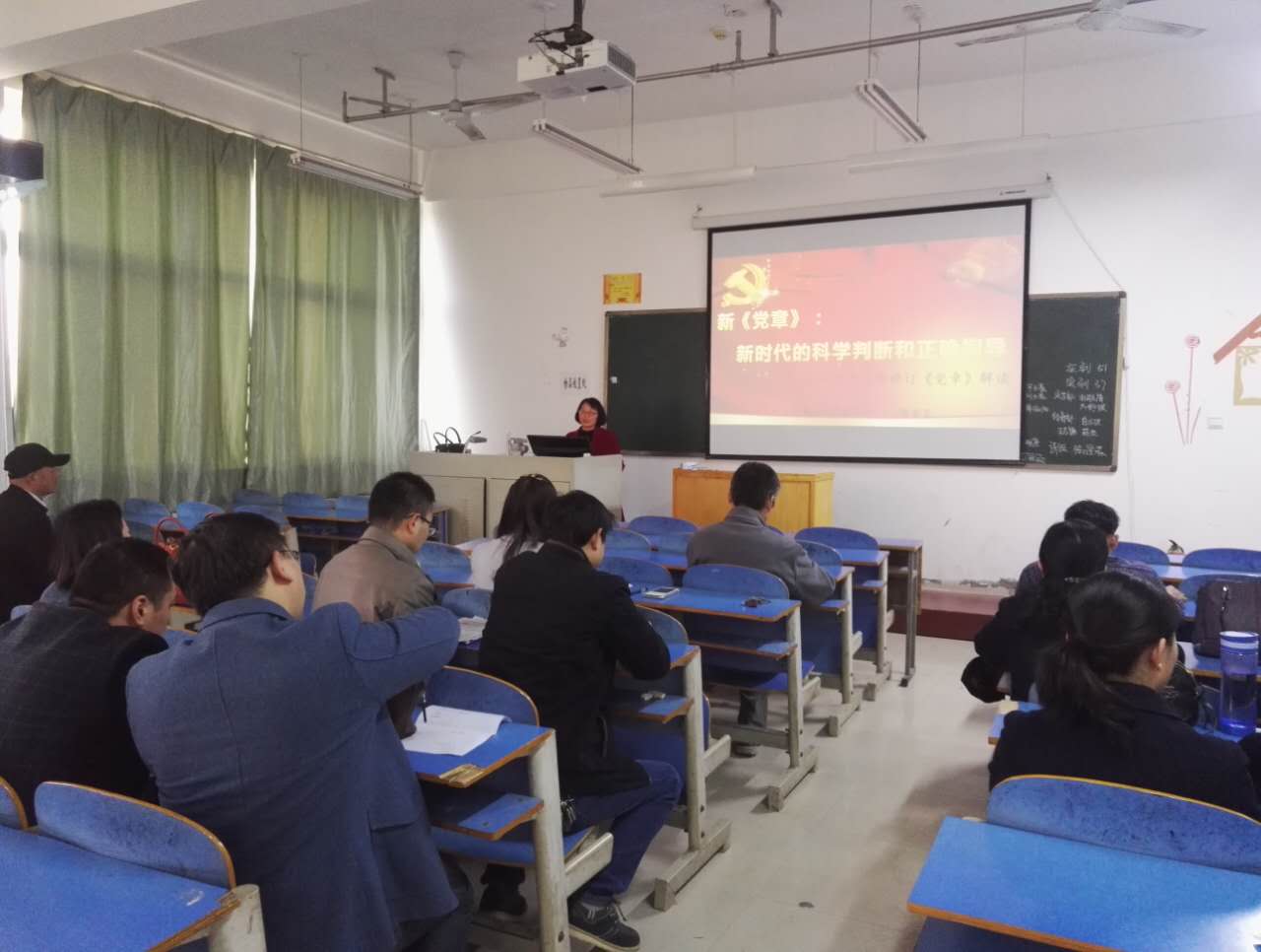 为了进一步加强党员对十九大新党章的认识与理解,11月6日下午,外国语学院全体党员齐聚外院402教室,共同聆听我校思想政治理论教研部常素芳教授上的“新党章:新时代的科学判断和正确指导——十九大新修订《党章》解读”主题党课。