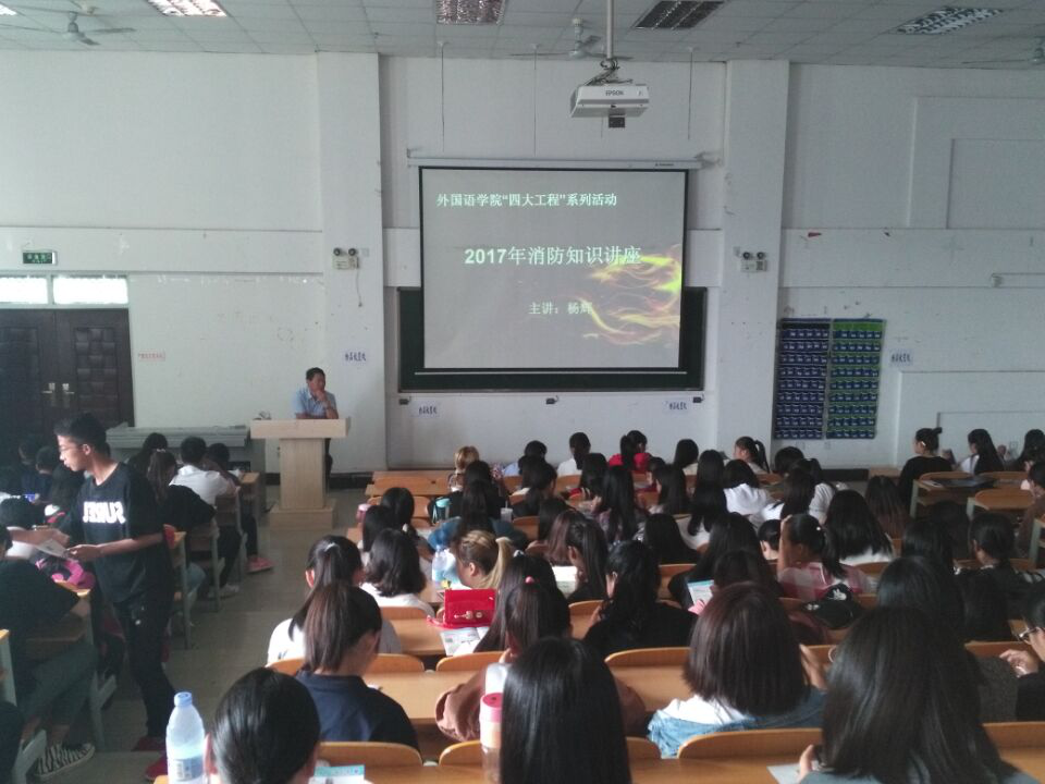 9月30日上午,外国语学院在17号楼408教室为2017级新生举办了消防知识讲座。学院党总支书记高润阔、副书记梁波及2017级新生辅导员李充参与了此次讲座,主讲人是保卫处杨辉副处长。