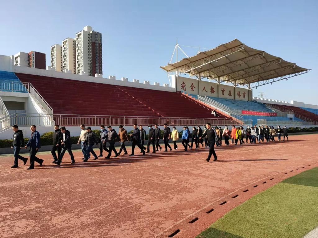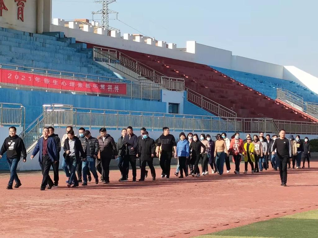 为丰富广大老师们的业余文化生活,促进教职工锻炼身体、增强体质,进一步落实校工会《关于开展2021年度秋冬季教职工健身月活动的通知》,结合我校疫情防控工作要求,11月25日下午,外国语学院分工会组织学院全体教职工在运动场举行主题为“强身健体 战胜疫情 健康生活 快乐工作”健步走活动。