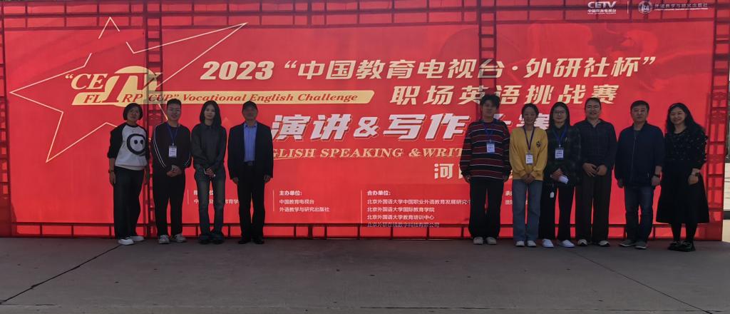 10月30日传来喜讯,在2023“中国教育电视台·外研社杯”职场英语挑战赛(河南省赛)中,我校外国语学院学生任佳欣(指导教师段照炜)荣获演讲大赛一等奖、信息工程学院学生董子昂(指导教师马玉红)荣获演讲大赛二等奖、外国语学院学生李璟憬(指导教师韩超)荣获写作大赛一等奖、信息工程学院学生丁赵瑞(指导教师蔡曙婷)荣获写作大赛一等奖、材料与化学工程学院学生徐崇珅(指导教师顾军)荣获写作大赛二等奖。