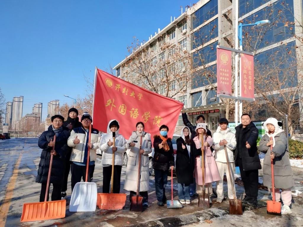 我市持续多日的低温雨雪天气造成道路结冰,给师生的出行带来很多不便。为了保障校园安全,维护正常的教学生活秩序,12月17日上午九点,外国语学院党总支和团学联迅速行动起来,组织师生开展清理冰雪志愿服务活动。