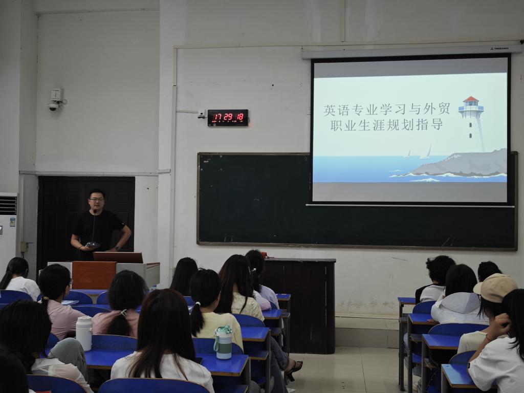 6月4日下午,外国语学院商务英语专业2011届优秀校友姜东东在15号楼122教室为商务英语专业学生作报告,报告会由党总支副书记秦新峰主持。