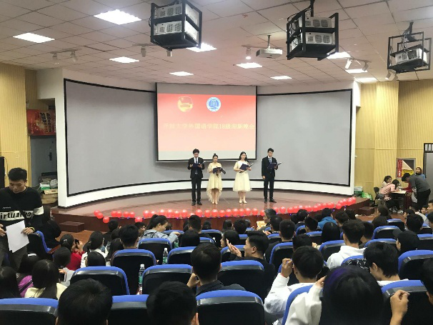 外国语学院院长张九明首先上台致辞,告诉同学们大学是人生最重要的时期,是展现自我的舞台,大家要做的就是揣紧自己的热情,抓紧机会,展现美好的自己,张院长表达了对新生的祝福和期望。然后新生代表徐昊上台发言,表达了自己开学以来的感受,大学是必不可少的一段时光,是磨炼的历程,让学生从学校踏入社会的过渡时期,希望同学们都能够抓住机会,抓住时间,不让光阴虚度。晚会节目多样,形式丰富,充分展现了新生同学们的活力与风采。