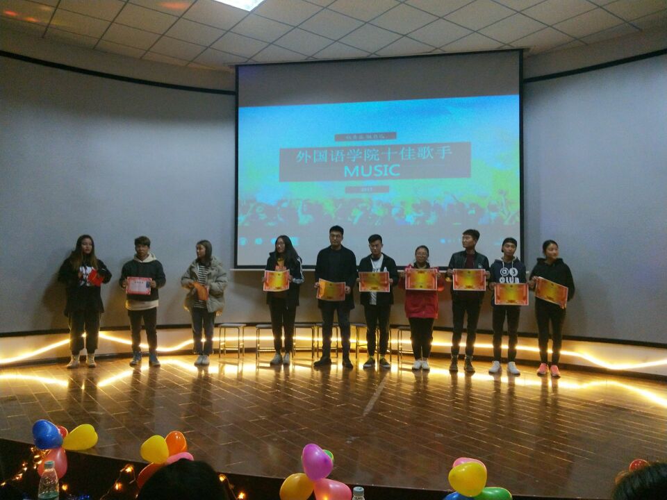 2017年11月19日晚7点,外国语学院十佳歌手决赛在国教学院一楼报告厅如期举行。出席此次活动的有团总支书记肖丽敏老师、15级学生会主席常青青、16级学生会主席李进、以及各院学生会主席和团总支副书记。