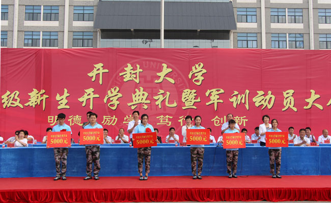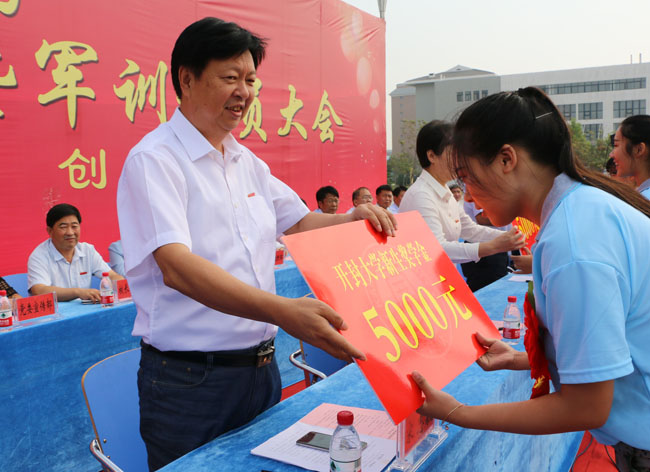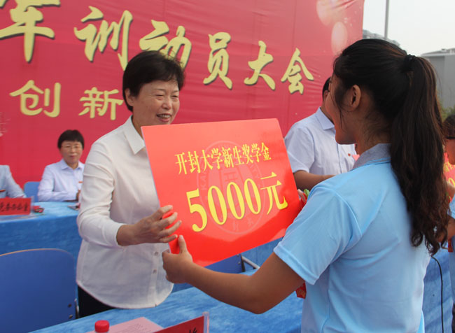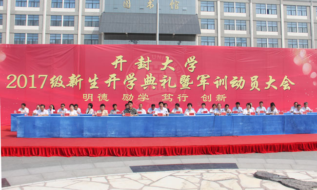 校长宋志敏讲话。宋校长代表学校向来自全国各地的5570名新同学的到来表示热烈的欢迎和衷心的祝贺!向承担本次军训任务的教官们表示衷心的感谢!宋校长向新同学简要介绍了开封的历史文化,回顾了我校37年来走过的闪光历程、取得的光辉成就以及我校目前的发展现状。