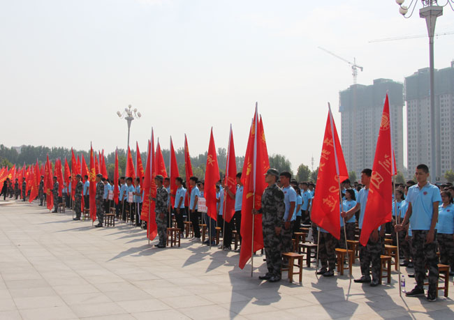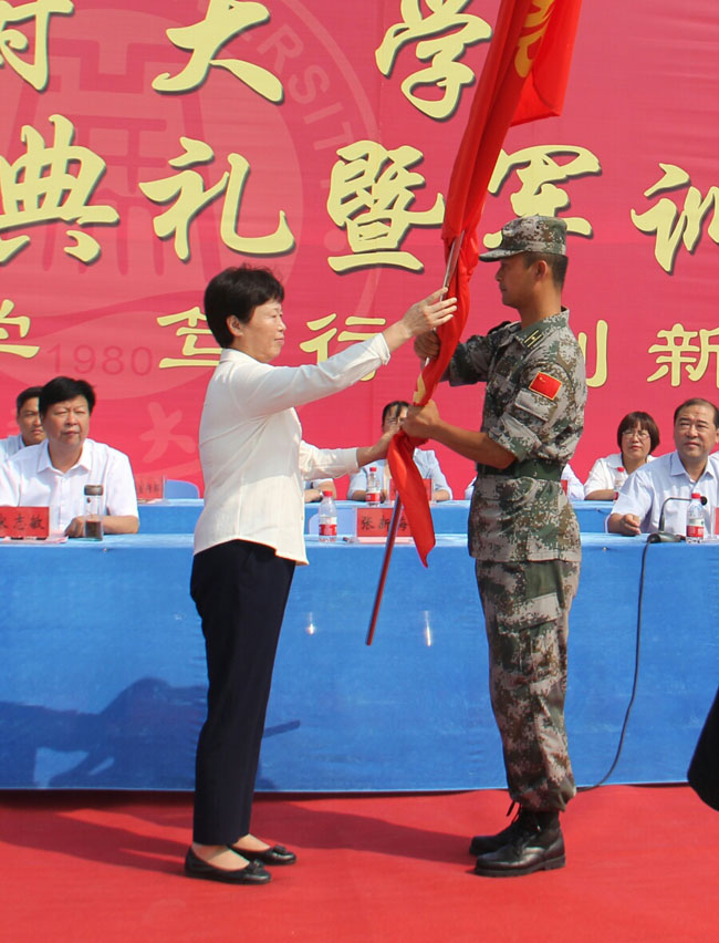 校党委书记张新梅向军训团授旗,并宣布bat365在线官方网站2017级新生军训开营!