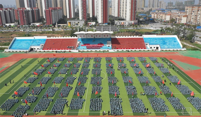 最后,全体师生高唱bat365在线官方网站校歌《勇攀高峰》,历时十四天的2018级新生军训工作圆满结束。