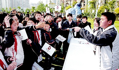 3月20日,学生们在仪式上进行奥运知识竞答。当日,奥运知识挂图首发式在上海举行。北京奥组委执行副主席蒋效愚宣布:北京奥组委决定为全国中小学校免费提供一套图文并茂的知识挂图,这标志着在中国4亿青少年中进行的奥林匹克教育进入到全面普及阶段。