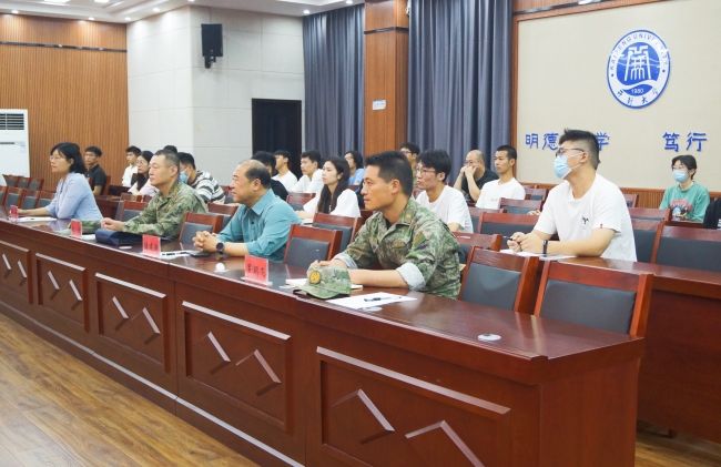 本站讯 6月13日上午,河南省人民政府、河南省军区组织河南省2023年征兵宣传进高校启动仪式。我校在行政楼第二会议厅设分会场,龙亭区人武部上校部长张舰、校党委副书记储建新出席会议,龙亭区人武部、校学生工作部(武装部)相关同志及各院部师生代表集中收看了本次启动仪式的实况直播。
