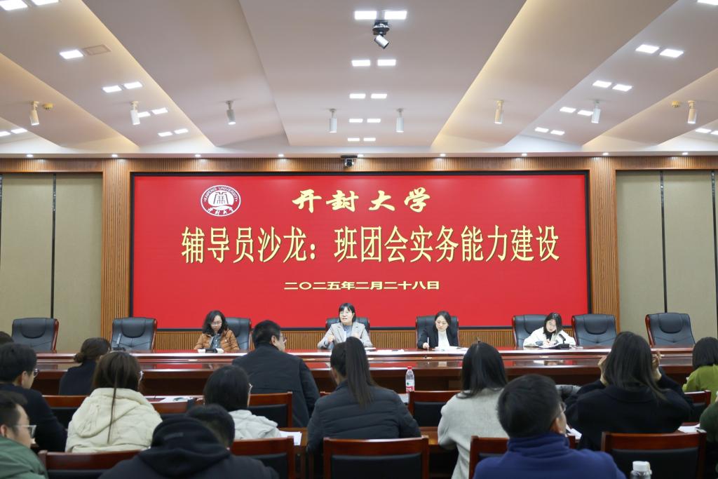 随后,举行了以“班团会实务能力建设”为主题的辅导员沙龙。经过随机抽签,四位辅导员老师分别进行了班团会现场展示。通过跨学院思维碰撞,为提升班团会育人实效提供了多元路径参考。今后,学校将定期组织开展此类活动,不断激发学工队伍的创新思维与实践热情。