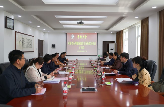 本站讯 4月11日上午,受河南省委教工委、河南省教育厅的指派,由商丘师范学院副院长王晓征带队的河南省高校心理健康教育工作标准化建设第三验收专家组一行5人,对我校心理健康教育工作标准化建设情况进行实地考察验收。校党委委员、副校长万是明出席并主持验收汇报会,相关职能部门负责人以及大学生心理健康教育中心教师参加会议。