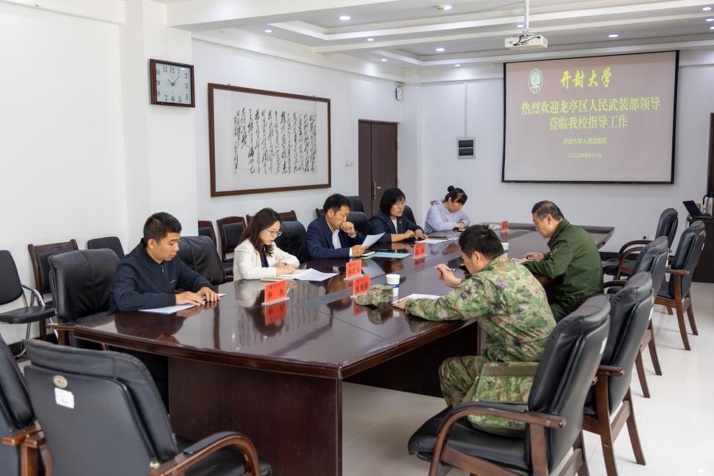 张舰对我校的国防教育工作给予高度评价。他表示,多年来,bat365在线官方网站与龙亭区人武部密切配合,在深化国防教育、开展大学生征兵等方面共同努力,取得良好成绩,希望双方继续深化多领域合作,共同推进军民融合发展。