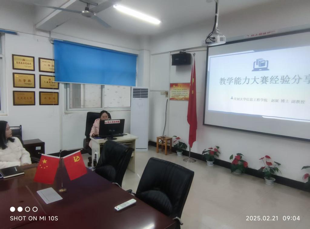 本站讯 为进一步提升教师教学能力,明晰职业教育教学能力大赛赛制内容,信息工程学院于2月21日上午9点,在3号楼312会议室召开教师教学能力大赛赛前培训会。会议由副教授赵展博士主持培训,信息工程学院院长张新成,书记武莹、参赛团队的所有教师参加了此次培训。